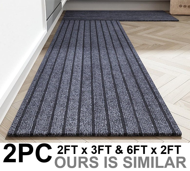 2PC RUG AND RUNNER SET WITH NON-SLIP BACKING - 2FTx3FT & 2FTx6FT - GREY/BLACK