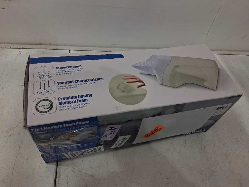 HOMCA 2-IN-1 3D CURVE Ergonomic Memory Foam Pillow for Side, Back & Stomach Sleepers - 15.7" x 23.6" - White/Grey (model: PL02)