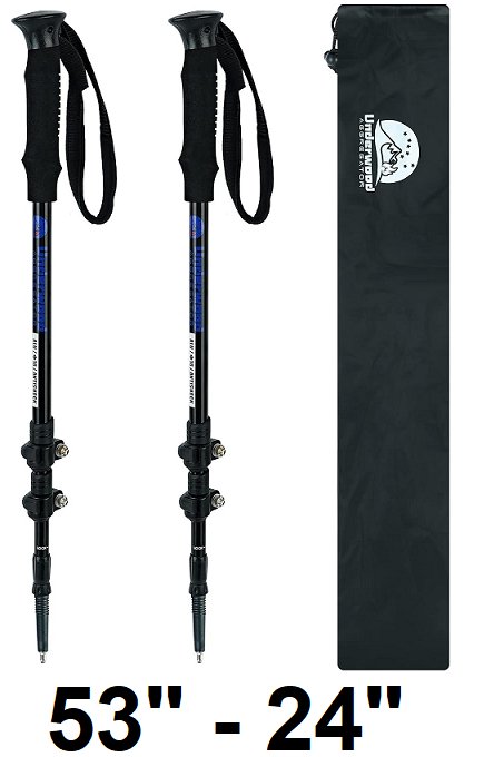 Trekking Poles Collapsible Hiking Poles Adjustable Aluminum Hiking Sticks - 24" to 53" - black -(model: tfl-2)