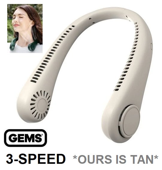 GEMS rechargeable portable 3-SPEED neck fan - tan