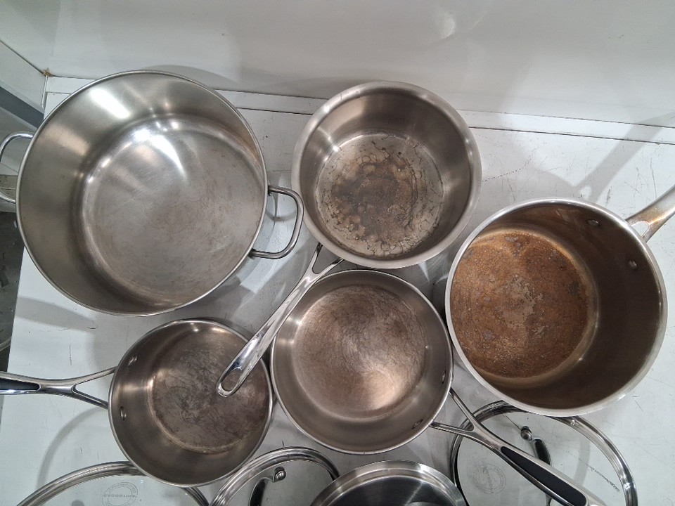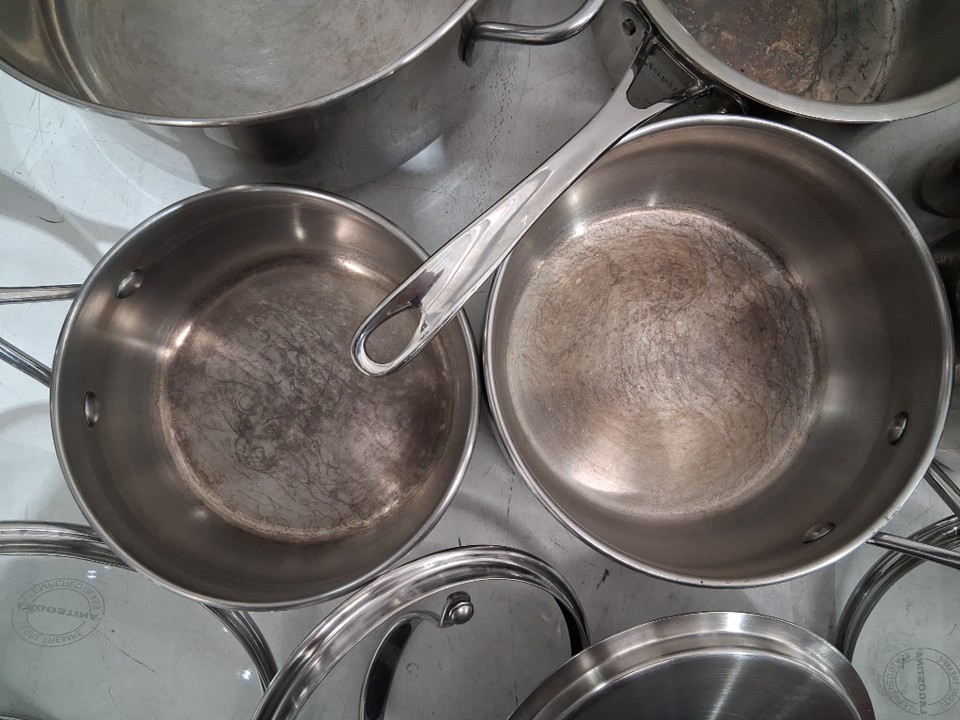 Pots have residue build up on inside and outside from light use, see photos Missing Pots and Lids, only 9PC of a 12PC set