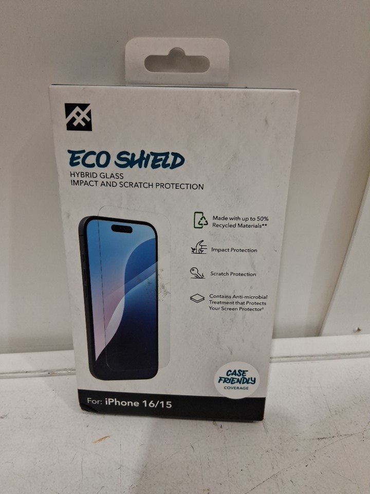 ZAGG ECO SHIELD HYBRID GLASS impact and scratch PROTECTION screen protector - FOR IPHONE 16/15 - clear