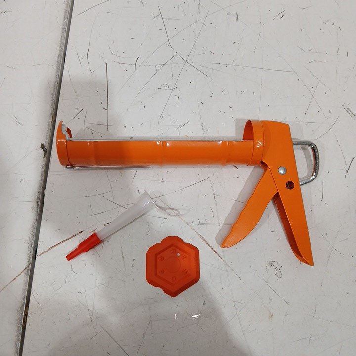 Holothurian Heavy-Duty Aluminum Adjustable Caulking Gun with Built-in Nozzle Cutter and Puncture Tool, Two Nozzles and Scraper - 12:1 & 25:1 Thrust Ratio - Orange (Model: LU-CG819P)