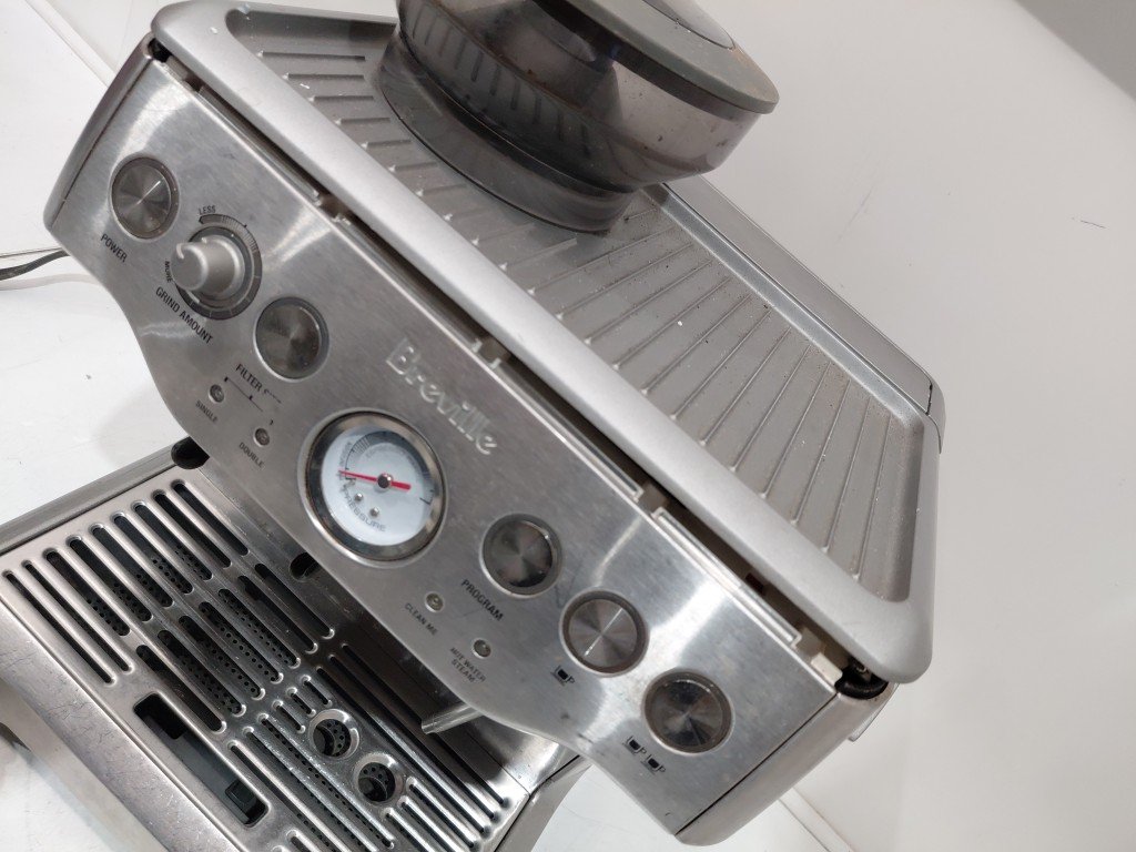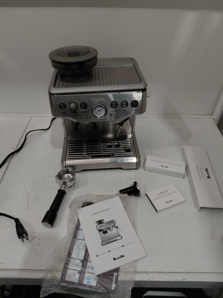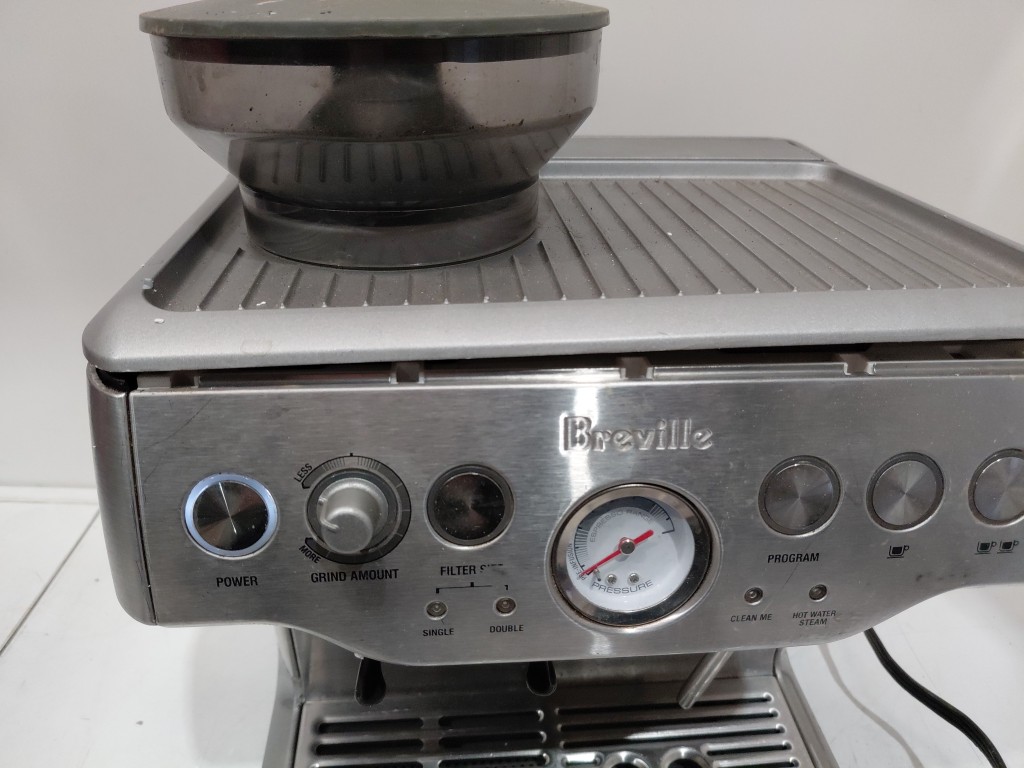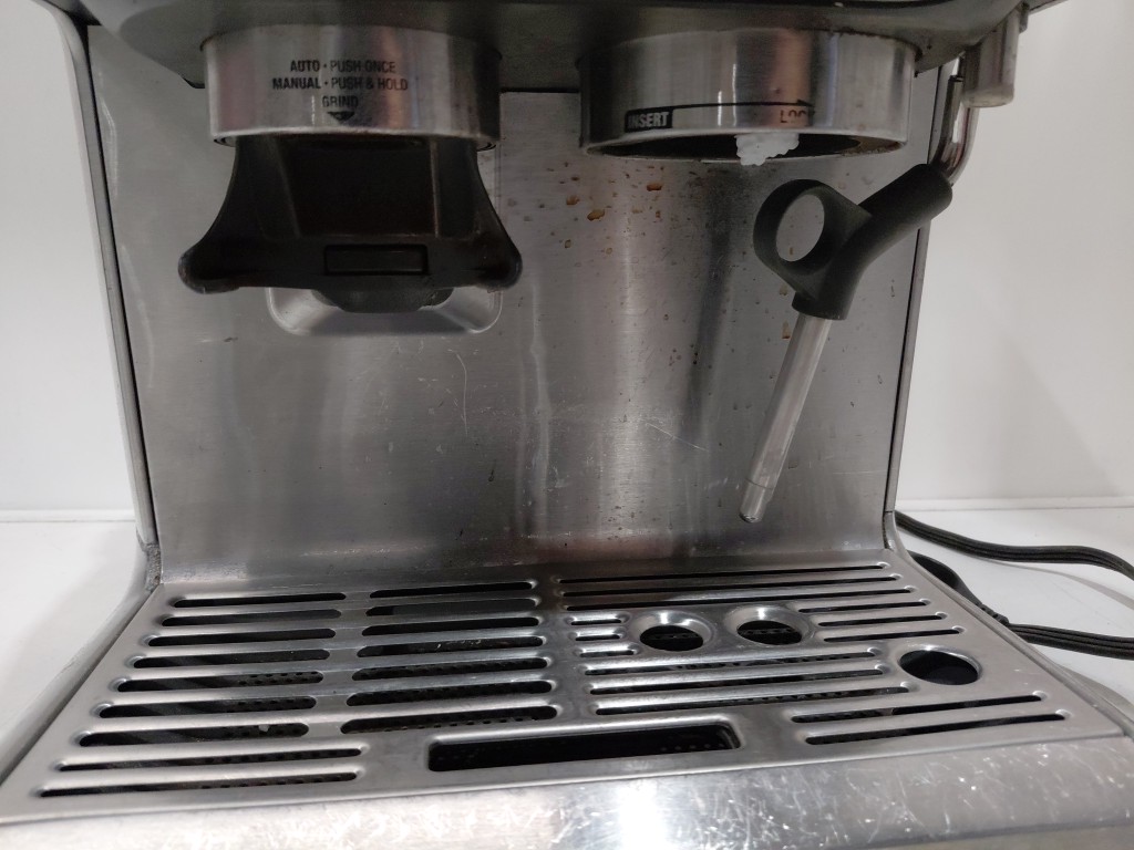 item is slightly lifting on the top, unsure if it can be clipped back it, doesn't seem to affect use of item. Item is covered in coffee/grinds from previous use. item will need to be thoroughly cleaned before use. Missing storage container, doesn't affect use of item (see photos) tested for power only