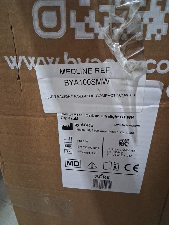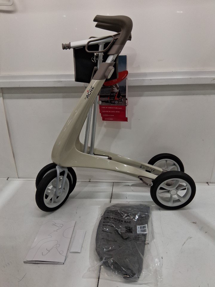 byACRE Carbon Ultralight Rollator Walker with Organizer Bag - MAX 285LB, 33.2" x 29.3" x 9.9" - OYSTER WHITE - (MODEL: BYA100SMW)