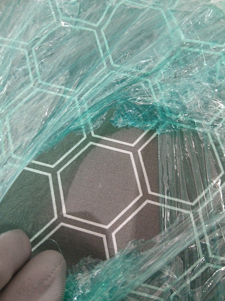 appears lightly used due to some scuffs near the iron rest. has some very minor dust marks on the fabric. one of the plastic feet is missing, causes wobbling when standing up.