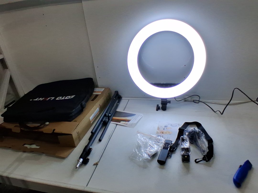 FOSOTO RING LIGHT LED KIT W/ STAND, REMOTE, CARRY BAG AND PHONE MOUNT, 3 LIGHTS, 18". 60W