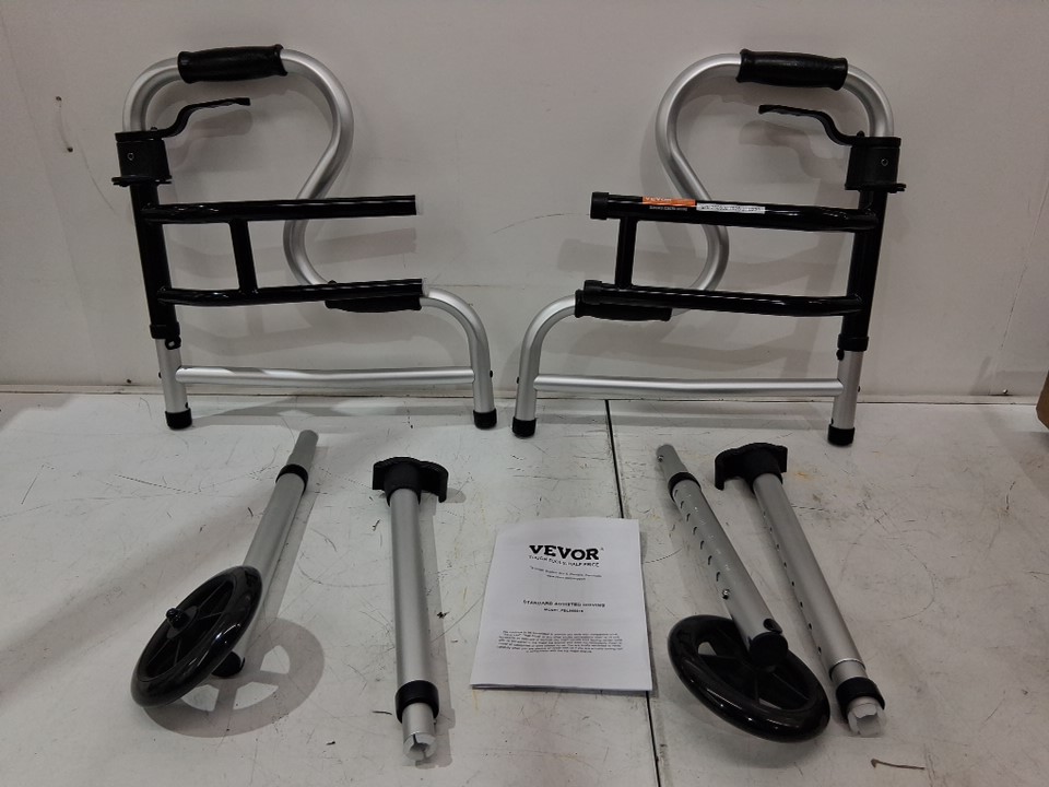 FOLDING walker stand with Adjustable Height & Width holds 450lb - silver/black - (model: fbl860516)