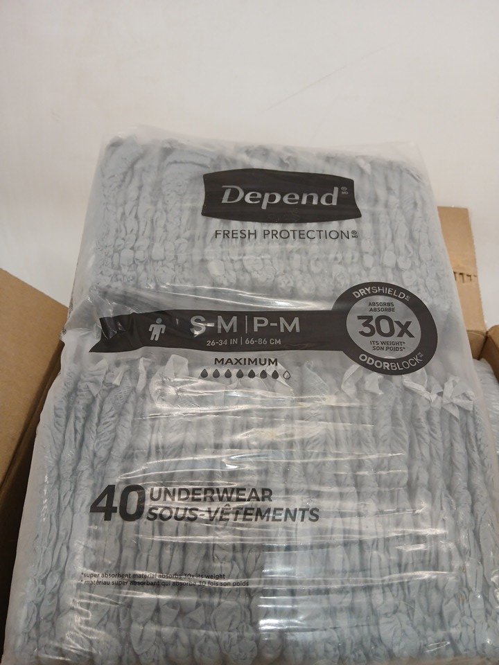 80PK MEN'S DEPENDS - small/medium - 26" to 34" - GREY - (Model: 5420202)
