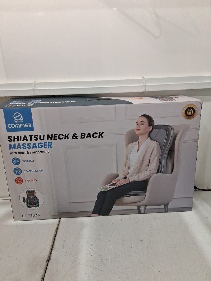 COMFIER NECK AND BACK MASSAGER SEAT with HEAT SHIATSU MASSAGE PADS PORTABLE WITH AIR with AIR COMPRESSION, ROLLING, KNEADING SETTINGS - grey (MODEL: CF-2307A)