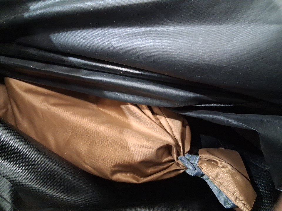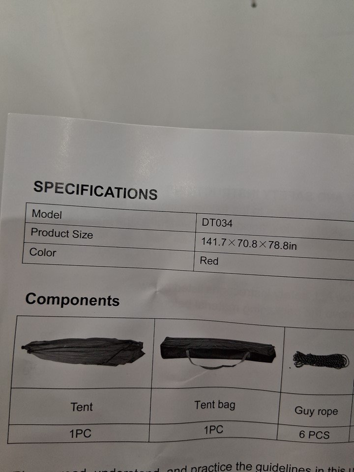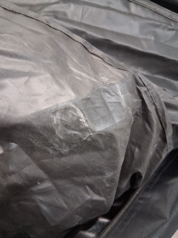 There are some dirt stains on the carrying bag and some dust/debris on the tent itself, as well as some scuffs/stress marks near the corners of the frame implying some prior usage or at least handling and setup - see photos. Outside of these cosmetic blemishes, appears to be in good condition with no obvious issues or damage.