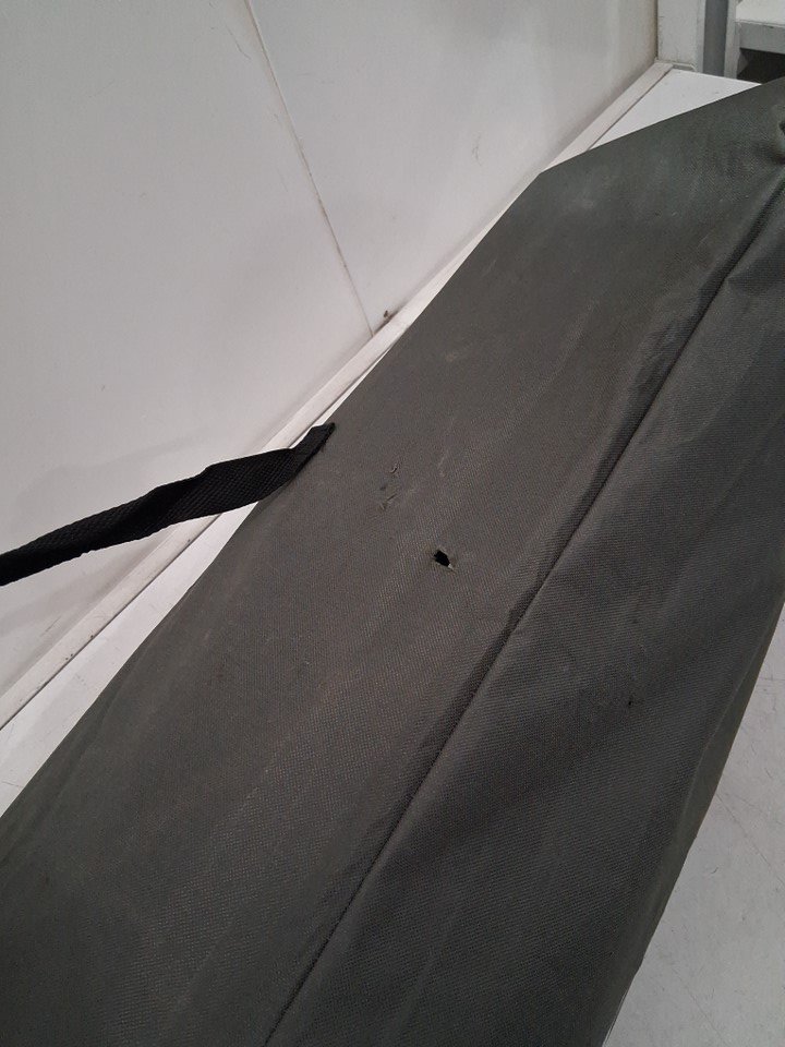 The cot itself is in excellent light use condition, however the carry bag has rips/scuffs and the drawstring close is broken from prior use. See photos.