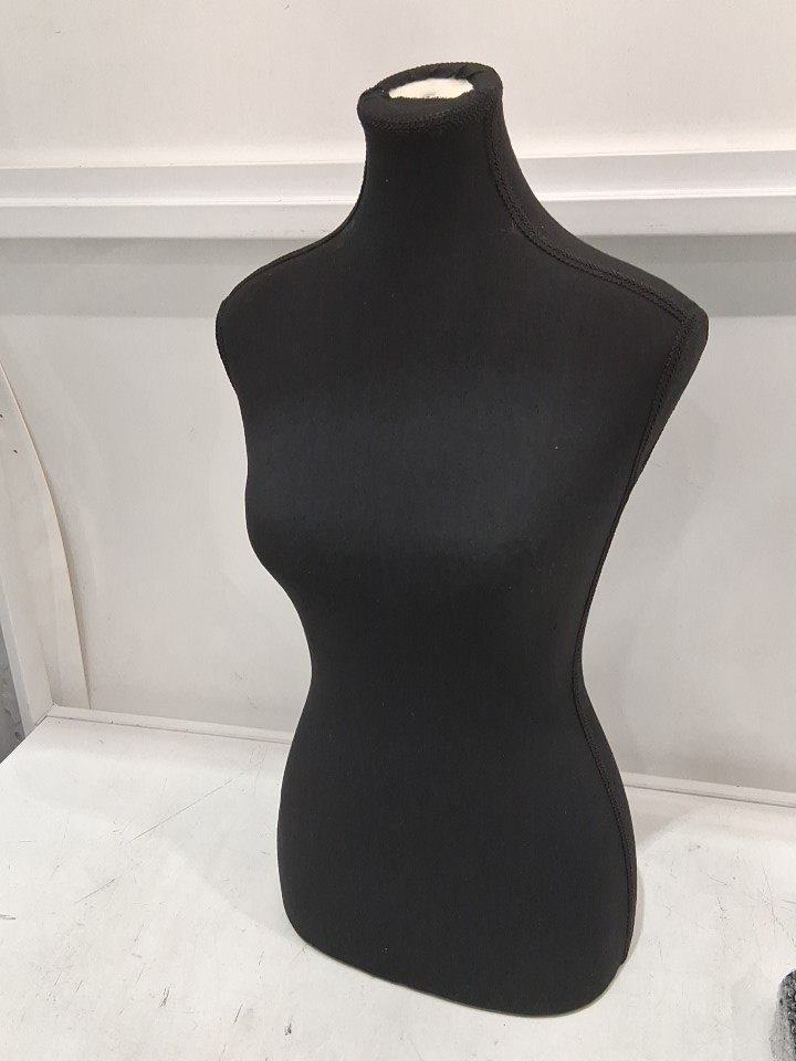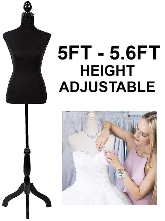Female Mannequin Torso Dress Form Stand with Wooden Tripod Base - 5FT - 5.6FT Height Adjustable - black (Model: XU-F340-black)