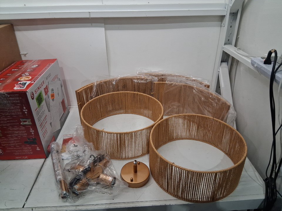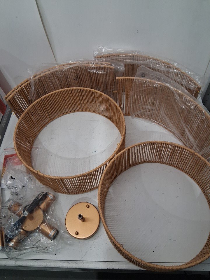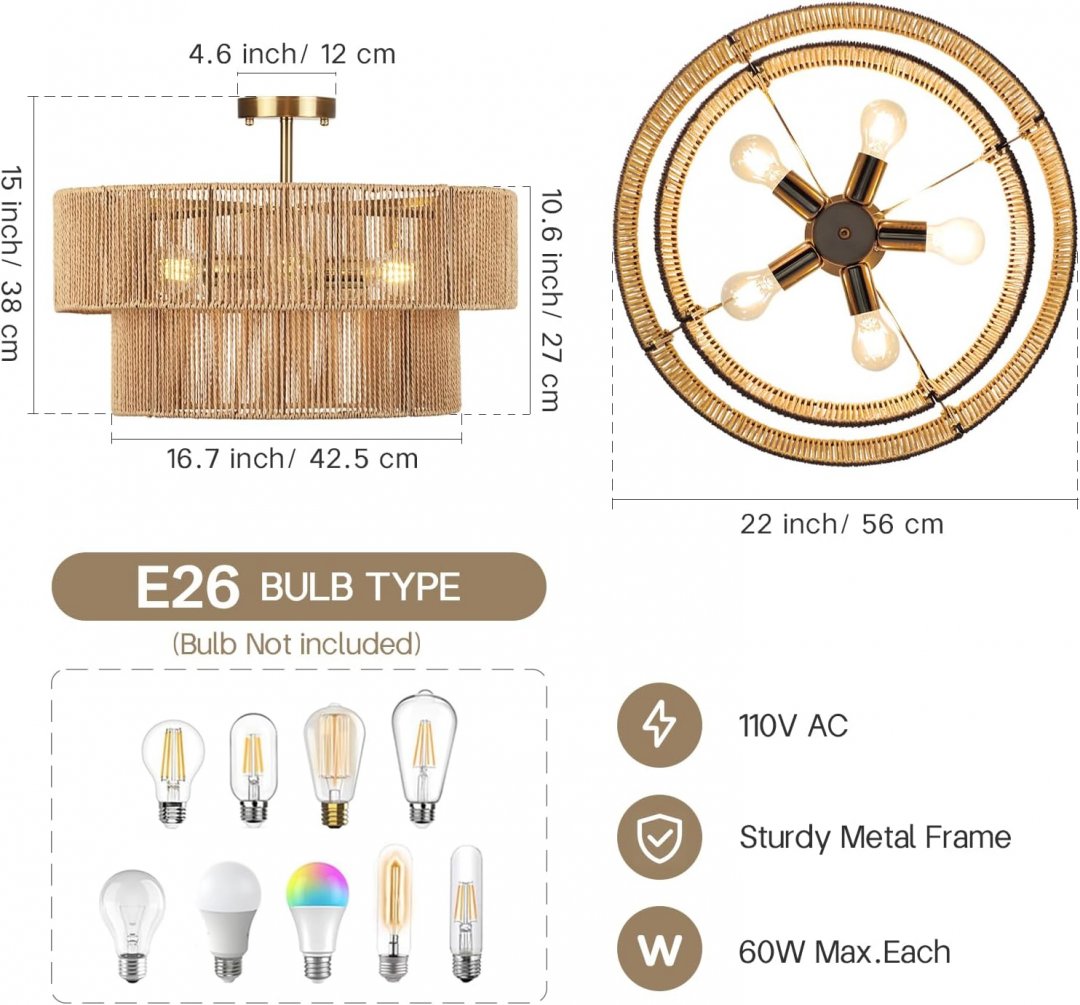 Boho 5-Light Flush Mount Woven Chandelier - 22" - GOLD (MODEL: ‎CL-LG-016)