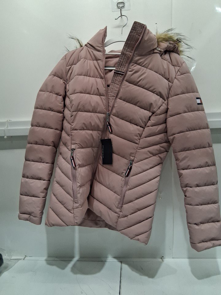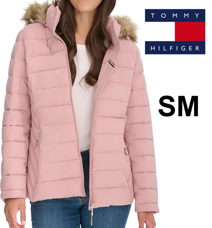 women's tommy hilfiger heavy weight essential short puffer coat jacket- size small - rose pink (style: tw4mp727)