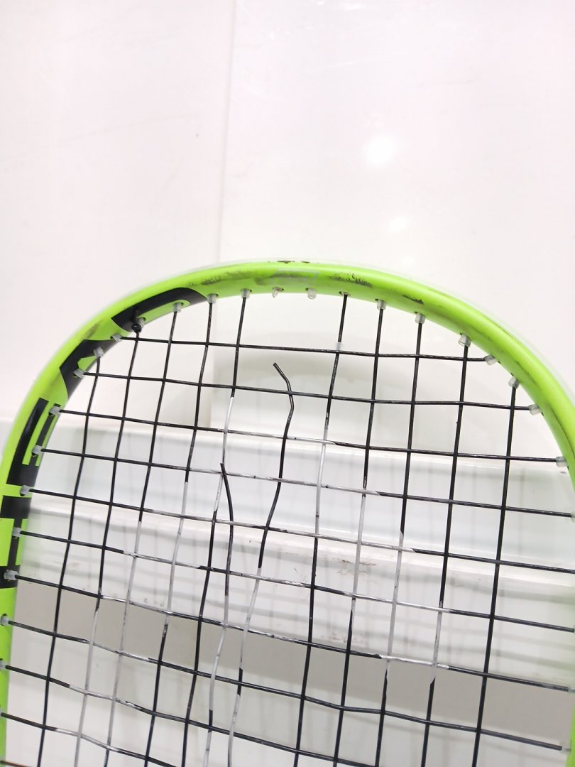 there are some markings indicating previous use as well as some of the strings are cut- racket will need to be restrung