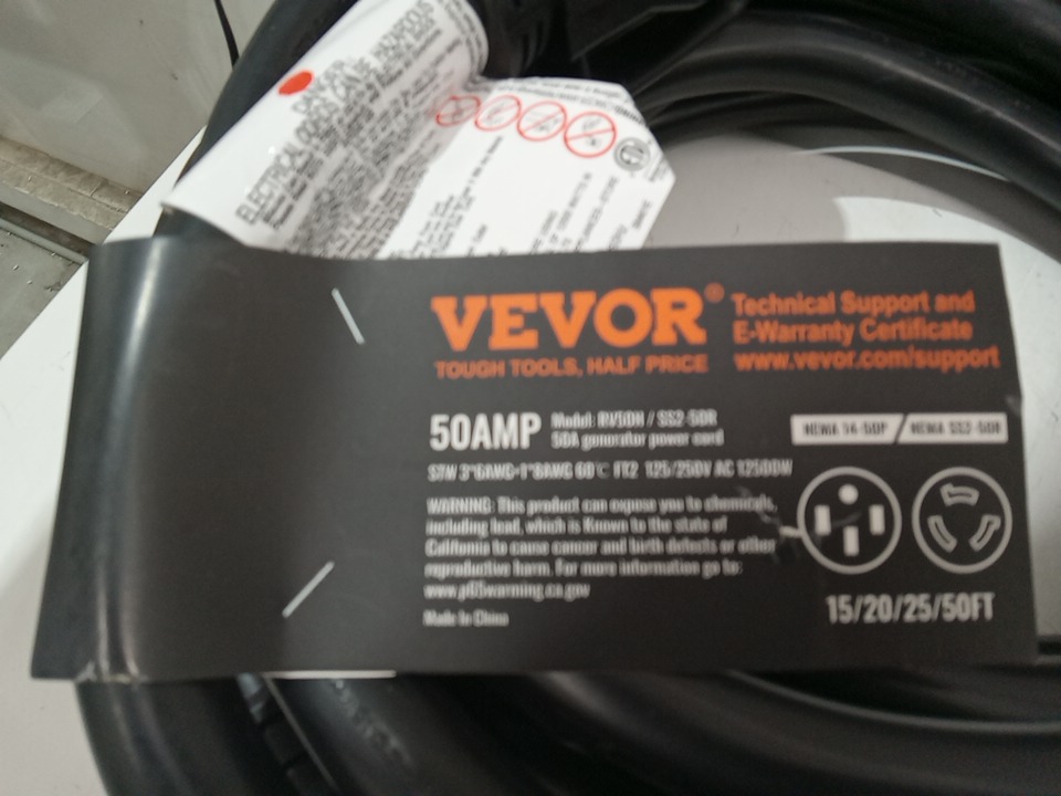durable RV power cord, PREMIUM POWER CORD with power inlet kit - 26.5mm - 50AMP - 50FT - BLACK (MODEL: rv50h / ss2-502+lstk06)