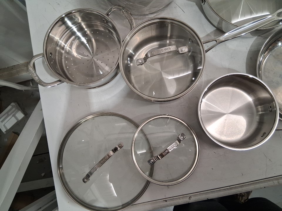 One pan has some Mild water Residue/Build up on it, Remainder of Set is Intact see photos
