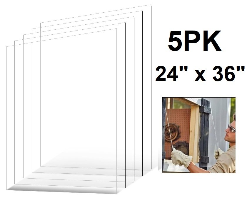 5PK PET/Plexiglass Flexible Plastic Sheets - 24" x 36" - 0.04" thick - clear (model: lx-pmma-24*36)