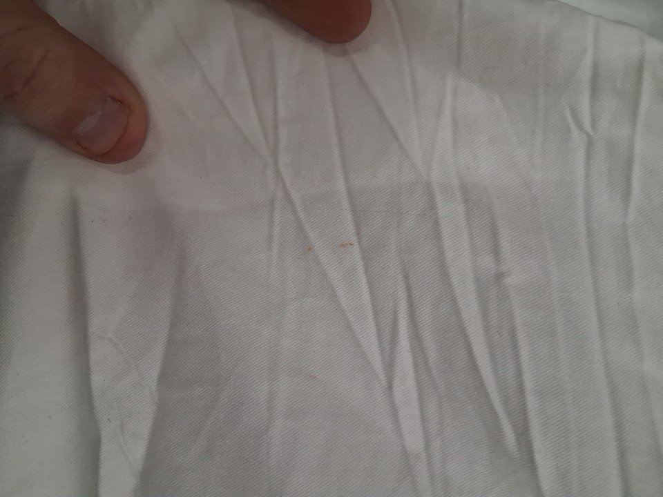 There is one very small stain mark on the case of the pillow and there were also a couple pieces of hair as well from previous use.