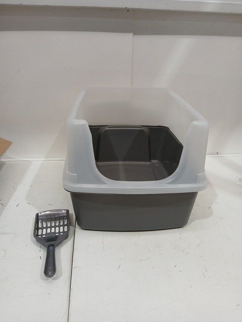 IRIS USA Large Open Top Cat Litter Box Pan with Scoop - 19" x 15" x 11.8" - Black (Model: 301754)