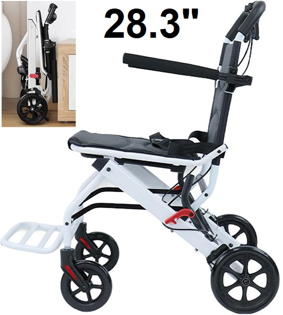lightweight Foldable Transport Wheelchair for Adults & Seniors - supports up to 200lbs, 28.3" - black/white