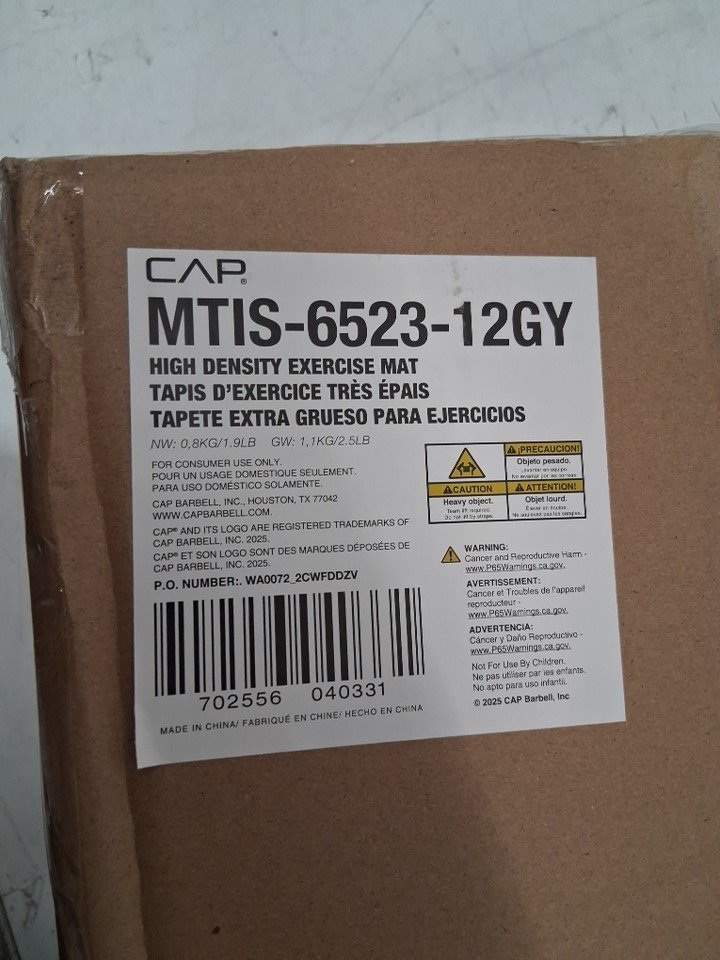 CAP Barbell High Density Exercise Yoga Mat with Strap - 68" x 24"- grey - (model: mtis-6523-12gy)