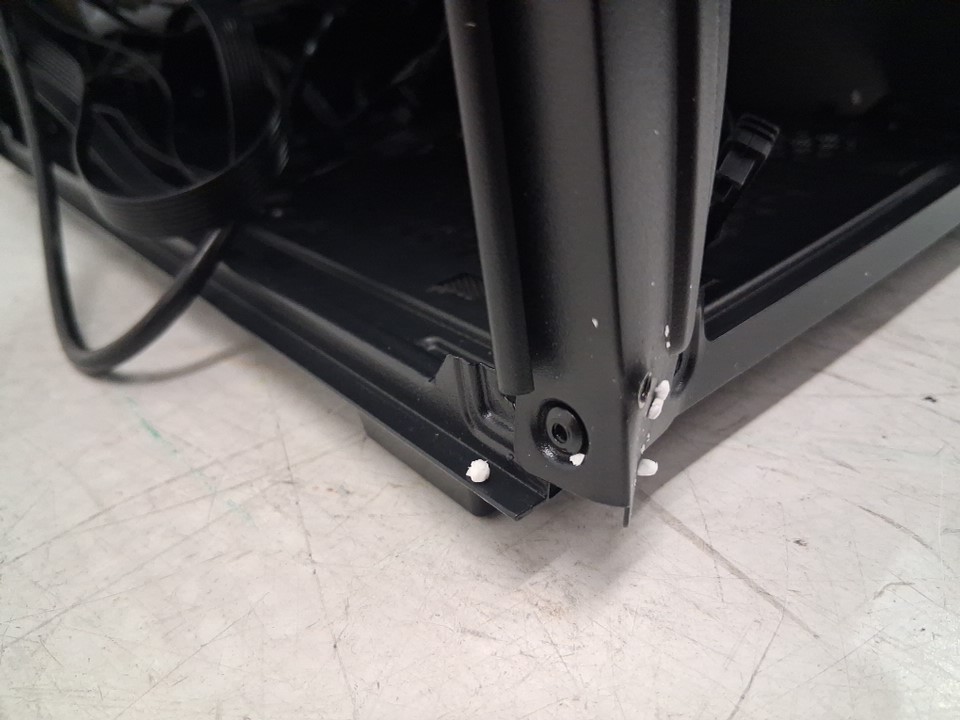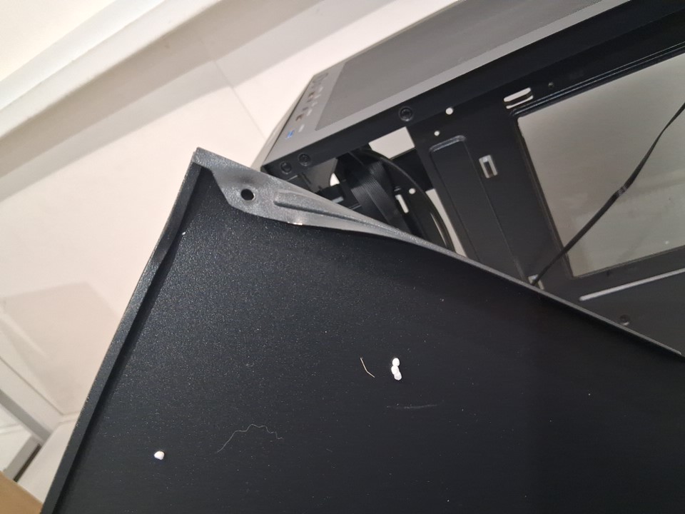Item has dents on corners/chipped pieces. Screw holes for are damaged for glass to be installed, denting on other slide piece. See photos