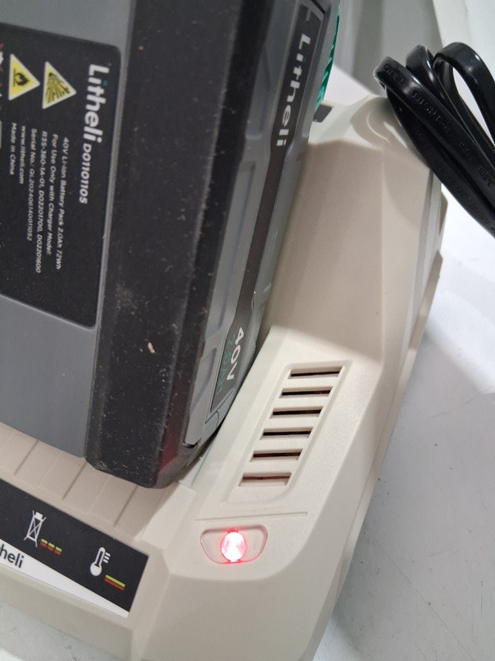 Tested for power just no light indication and there are some scratch marks on leaf blower from shipping, also the battery charging dock is different than in photos, see photos.