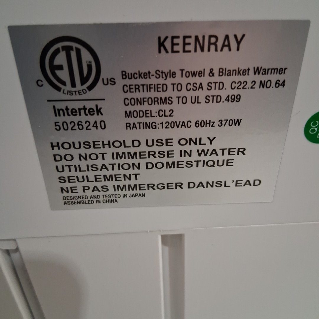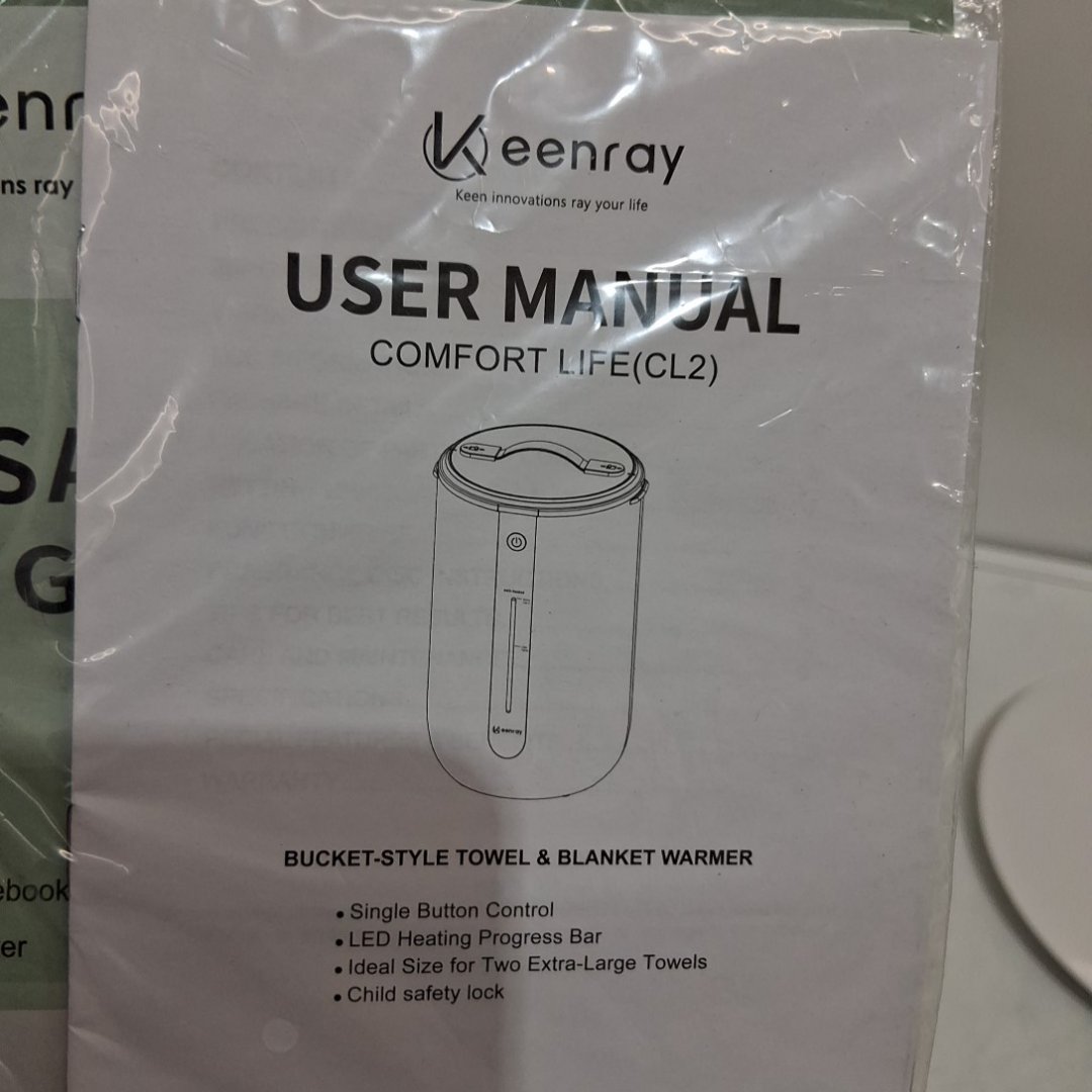 Keenray Towel Warmer Bucket with Auto Shut-Off - 18l - fits up to 2 towels - 40" x 70" - white/light brown (model: cl2)