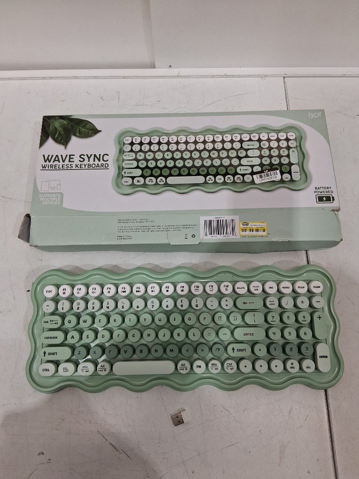 ijoy wireless wavy keyboard WITH usb-a receiver & BUILT-IN FOLDABLE KICKSTANDS - 102 keys - mint GREEN (model: IJ10497-TT)