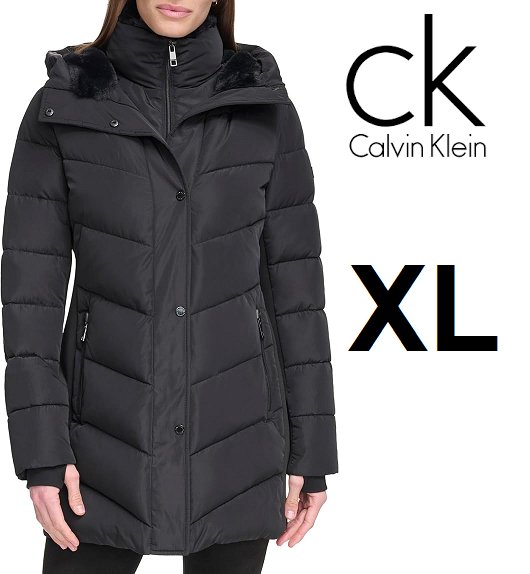 women's calvin klein Bib-front Puffer Jacket - extra large - black