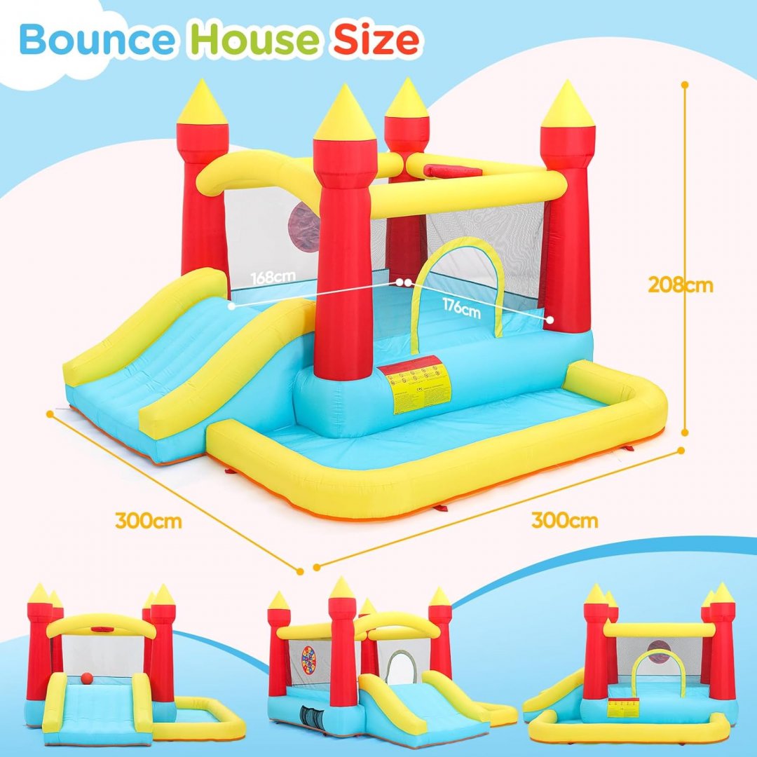 toiyjofe inflatable bouncy castle with slide and ball pit - 10ft x 10ft x 7ft - red/blue/yellow - (model: yy-ynfb-02)