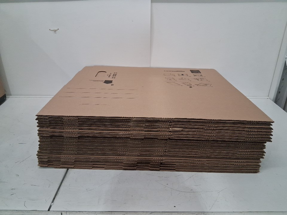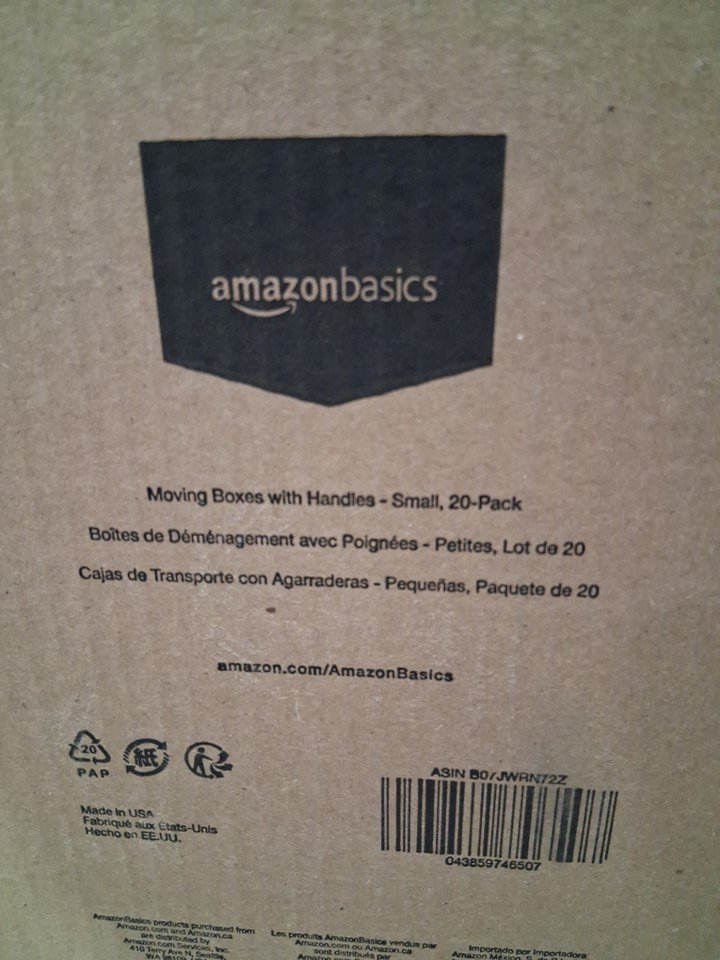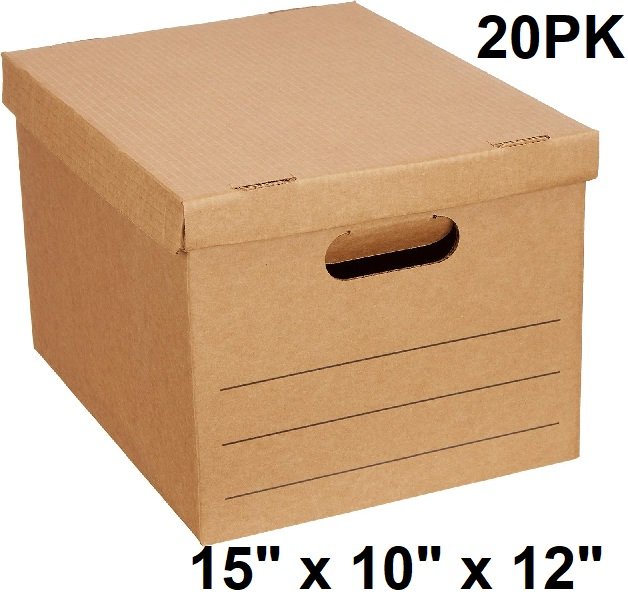 20pk amazon basics Moving Boxes with Lid and Handles - small 15" x 10" x 12" - brown