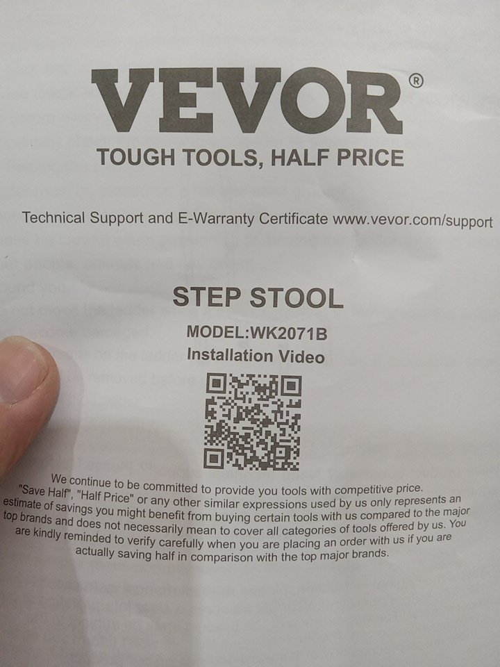 single step Step Stool with handle - 330lb cap - white/black (model: wk2071b)