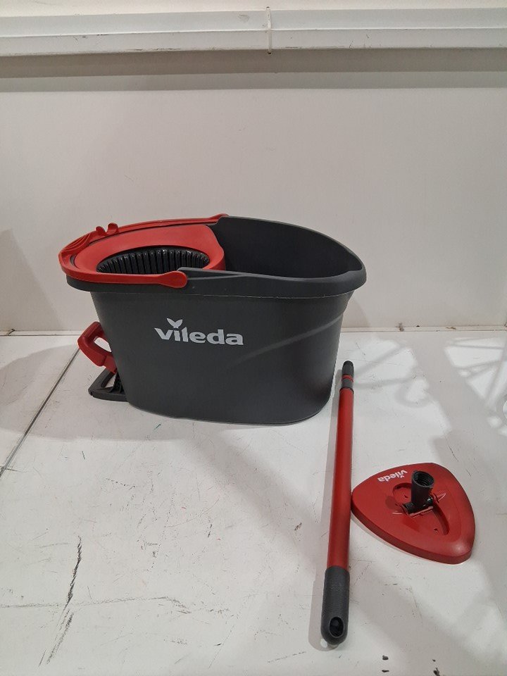 Product has cleaning chemical odor, there is no mop head attachment and there is some staining inside the bucket from previous.