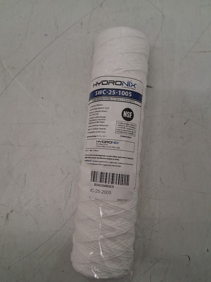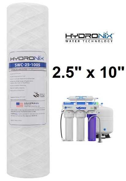 hydronix Universal Whole House String Wound Sediment Water Filter Cartridge - 2.5" x 10" - white (model: swc-25-1005)