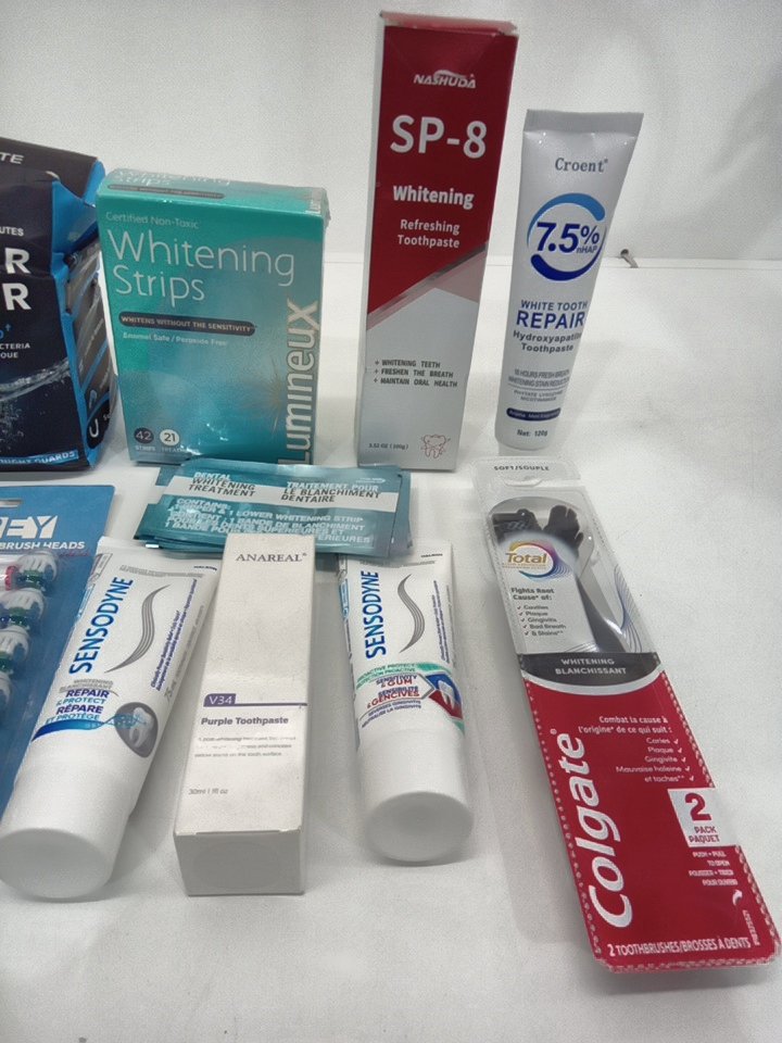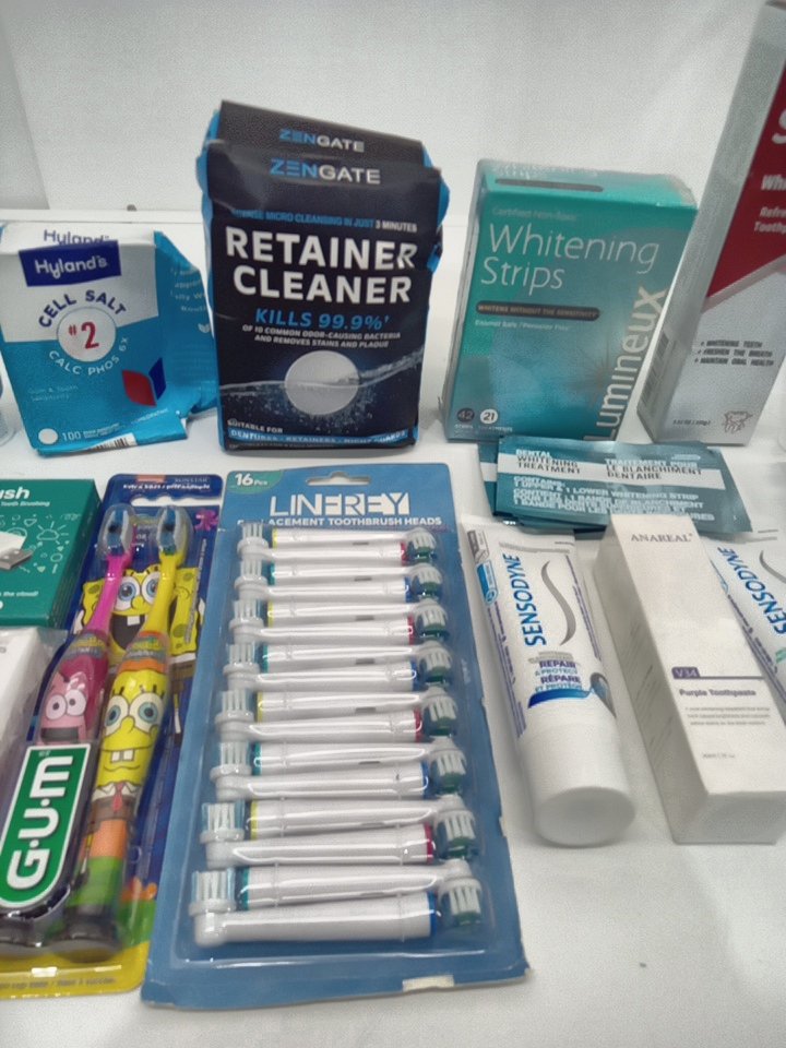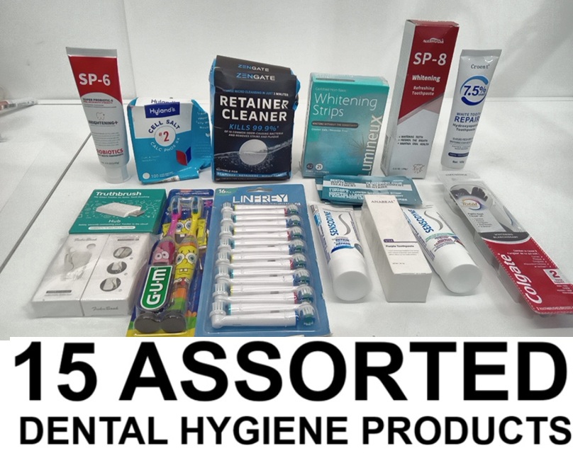 15 ASSORTED DENTAL HYGIENE products - whitening strips/ toothpaste/ toothbrushes