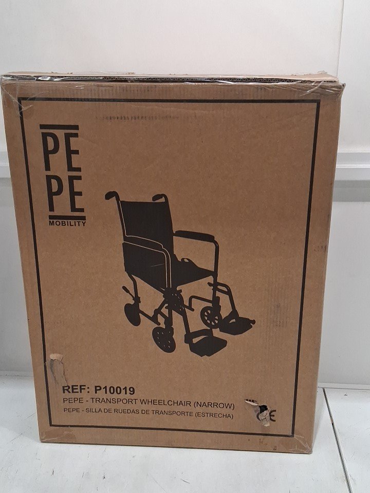 SENIOR PEPE MOBILITY LIGHTWEIGHT FOLDABLE WHEELCHAIR WITH NARROW 15" SEAT AND SAFETY BELT - BLACK (MODEL: P10019)