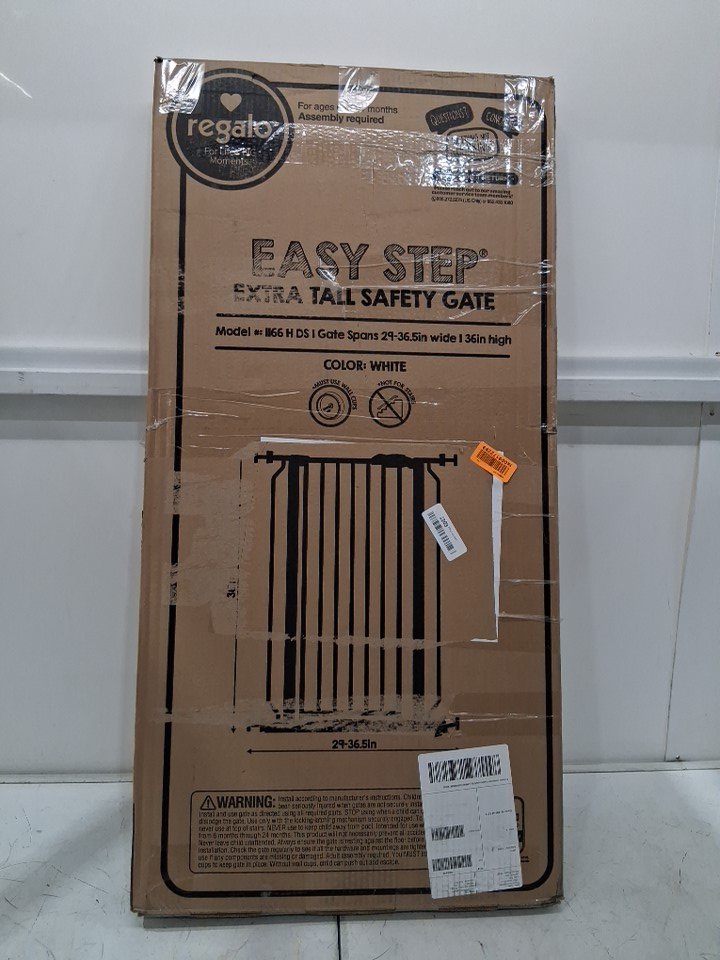 REGALO EASY STEP extra tall WALK-THRU METAL SAFETY GATE - 36" x 29" to 36.5" - WHITE (MODEL: 1166HDS)