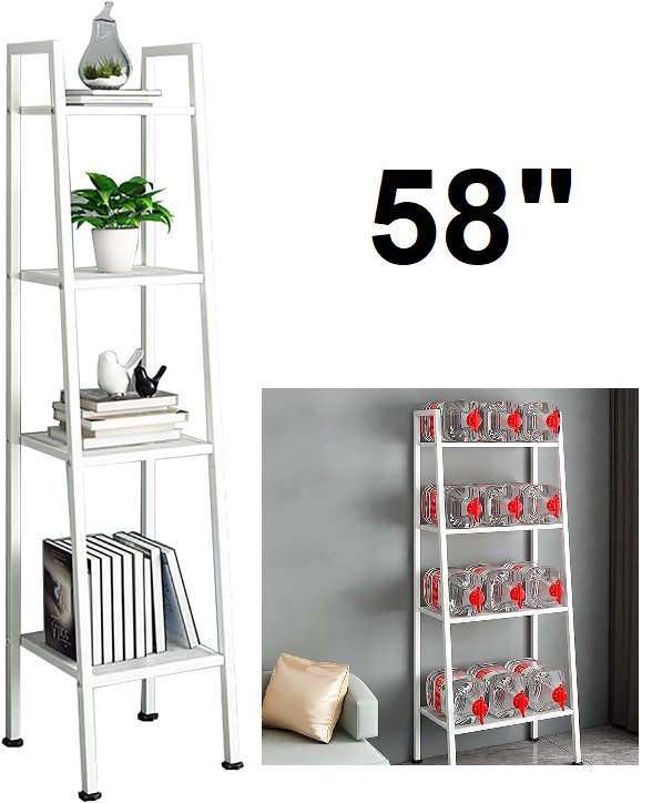 4 tier metal ladder bookshelf - 58" x 13.8" x 13.8" - white