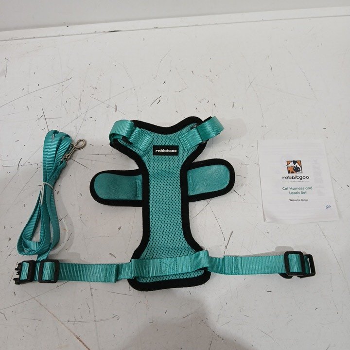 2PC RABBITGOO ESCAPE PROOF CAT HARNESS AND LEASH SET - MEDIUM- GREEN AQUA