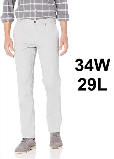 MEN'S AMAZON ESSENTIALS SLIM FIT WRINKLE RESISTANT FLAT FRONT CHINO PANT - 34W x 29L - GREY (MODEL: MAE60009SP18)