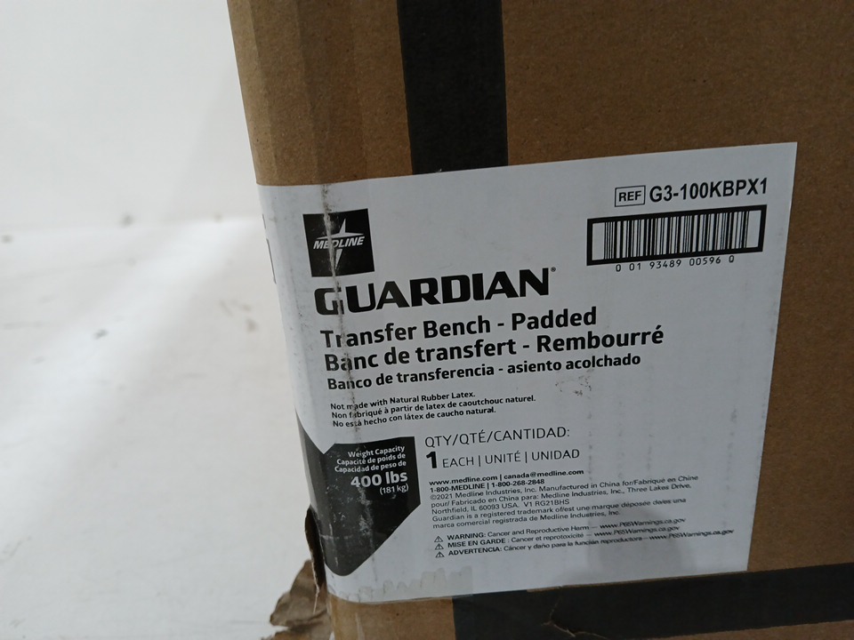MEDLINE GUARDIAN bathtub TRANSFER BENCH WITH BACK support & suction feet - max 400lbs - GREY (MODEL: G3-100KBX1)