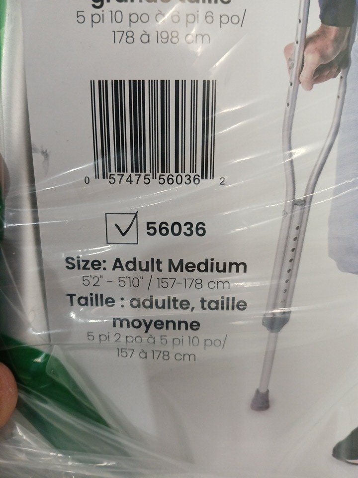 bios living medical adult aluminum crutches - medium - grey/silver (model: 56036)