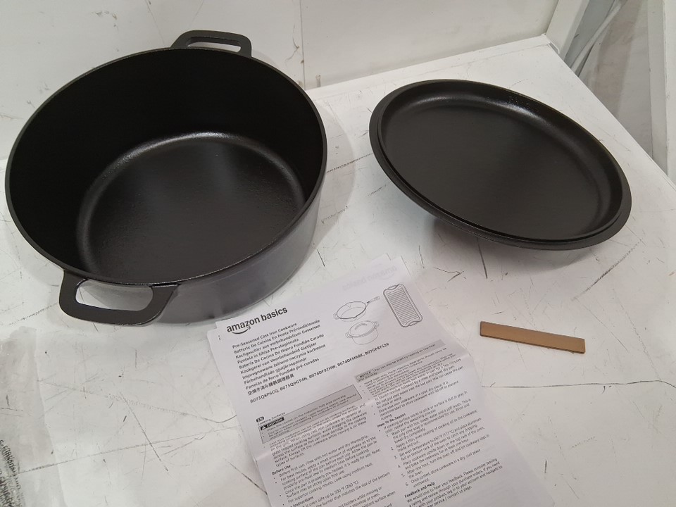 Amazon Basics Round Pre-Seasoned Cast Iron Dutch Oven Pot with Lid and Dual Handles - 7QT - Black (MODEL:KA7QT)