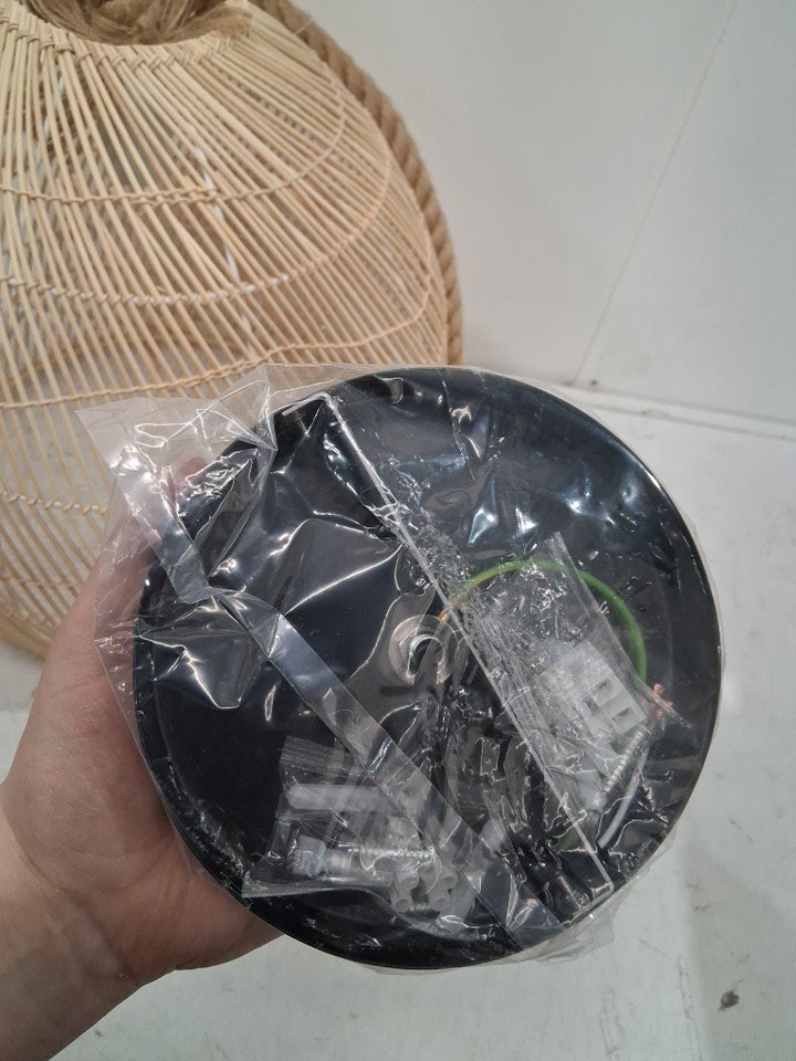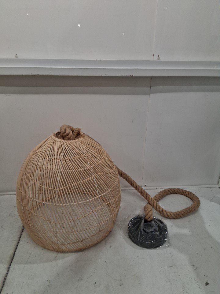 WALMHOMIE RATTAN WOVEN PENDANT LIGHT, HAND WOVEN HANGING CHANDELIER LIGHTING FIXTURE - BAMBOO CEILING LAMP- 15.5" DIAMETER - NATURAL COLOUR