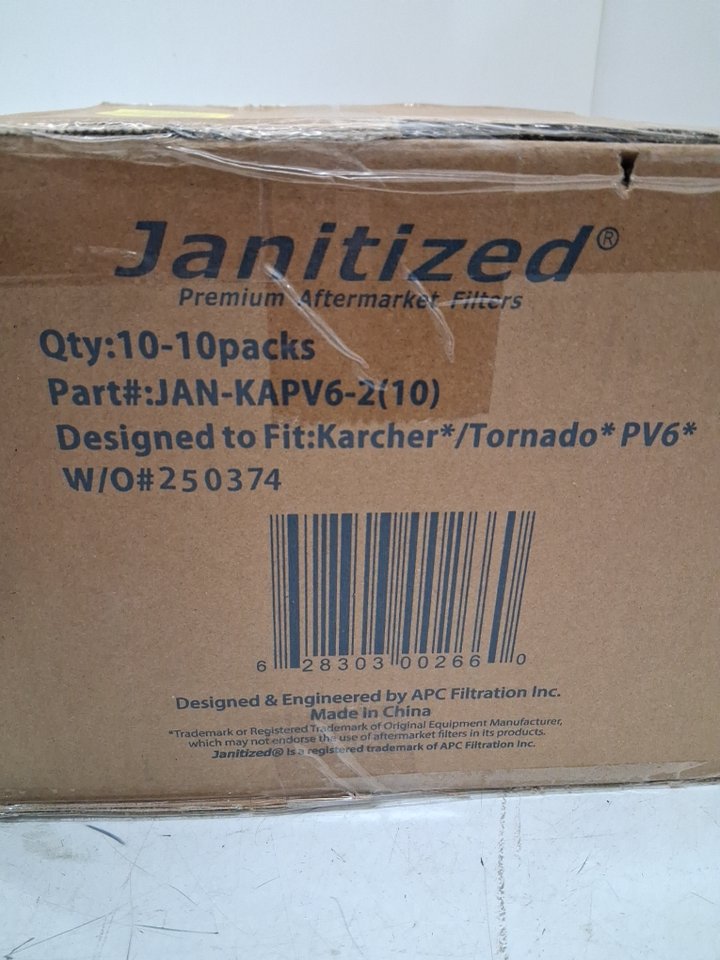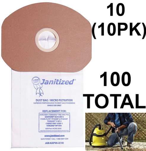 10 (10pk) (100 total) janizitized paper premium replacement commercial vacuum/dust bag - compatible with karcher & tornado pv6 & sanitaire & powr-flitre (model: jan-kapv6-2(10))