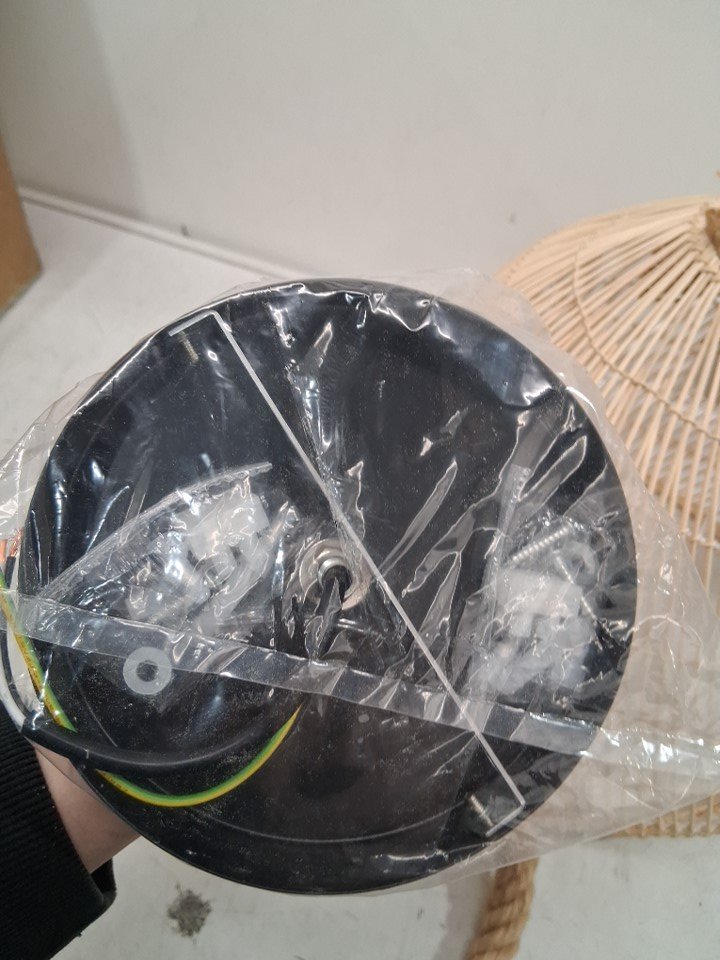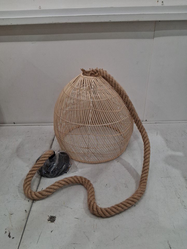 WALMHOMIE RATTAN WOVEN PENDANT LIGHT, HAND WOVEN HANGING CHANDELIER LIGHTING FIXTURE - BAMBOO CEILING LAMP- 15.5" DIAMETER - NATURAL COLOUR