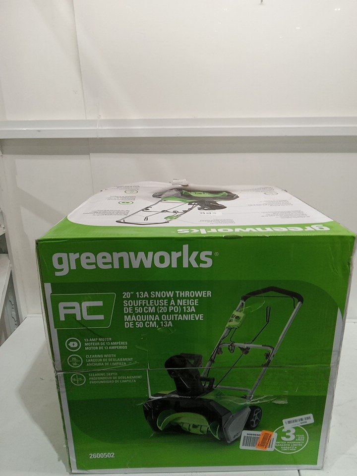 GreenWorks 13 Amp 20" Corded Snow Thrower (MODEL: 2600502)